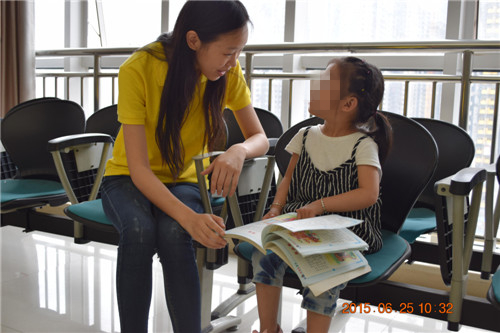 图片二:小朋友说,“姐姐你再给我讲个丑小鸭的故事吧。”