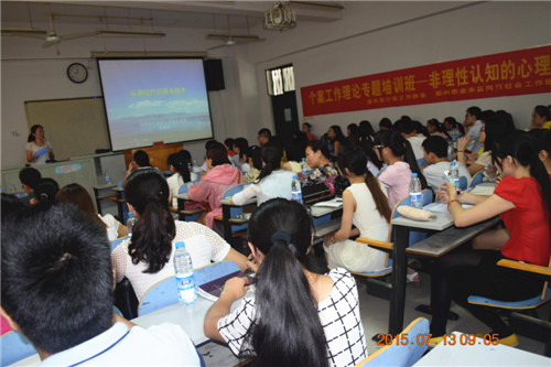 为了强化一线社工对个案专业理论的理解和应用,提高社工服务专业化水平,7月13日上午,由郑州市金水区社会工作协会主办、郑州市金水区同行社会工作服务中心承办的个案工作理论专题培训班第一期顺利开班。本期主题为“非理性认知的心理辅导——认知治疗的基本技术”,特邀请河南财经政法大学社会学系贾艳杰老师前来授课。