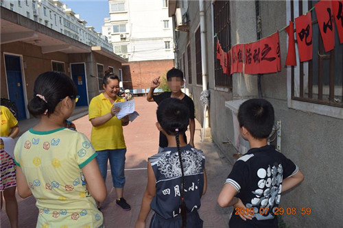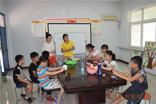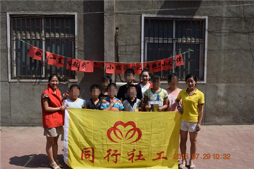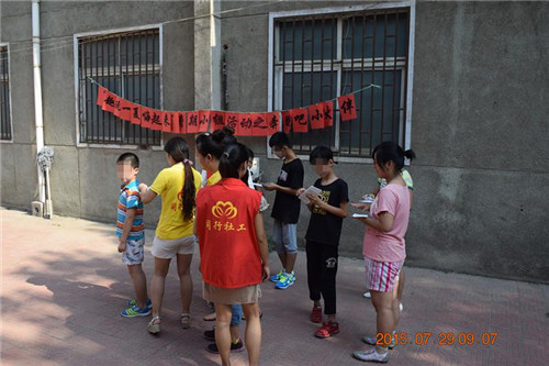 2015年7月29日上午八点半,同行低保家庭救助项目社工在同行社工服务中心小院举行“趣玩一夏,嗨起来!”暑期第四节小组活动“奔跑吧,小伙伴!”。除了参与前三次活动的同学,今天还有一位新伙伴的加入。本次活动的主要目的是:通过小组活动,提升组员的团结协作能力;培养组员的团队意识和团队责任心;通过团队游戏,使同学们能够快乐运动,暑期健康成长。本次活动共设五个部分:社工介绍活动流程、游戏闯关、你比划我来猜、撕名牌、游戏感受分享及下次活动预告。