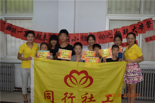 2015年7月27日,同行社工低保家庭救助项目社工在同行社会工作服务中心多功能活动室举行“趣玩一夏,嗨起来”暑期第六节活动“趣玩大本营”,也是此次小组活动的最后一节。上午刚过八点,几名组员就早早的来到了多功能活动室,填写活动登记表,帮忙收拾活动场地,与其他组员玩耍嬉闹。本次小组活动通过PPT展示的形式带领组员重温小组的点点滴滴,见证自身的改变和成长,分享参与活动的感悟,社工对活动中表现优秀的组员进行表彰并巩固组员发生的积极改变、适时地处理组员的离别情绪、商讨后续的跟进计划。