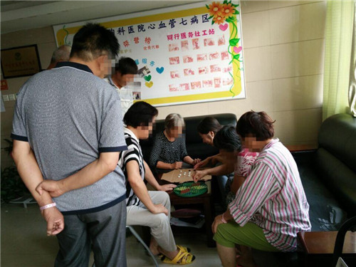 为扩大病友交往圈,提高病友生命质量,郑州市金水区同行社会工作服务中心的医务社工们于8月25日下午举行“棋”乐无穷——病区减压小组活动第四节,河南省胸科医院心内科七病区医护人员及8余名病友及家属参加本次活动。