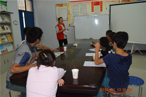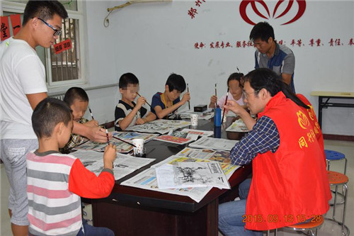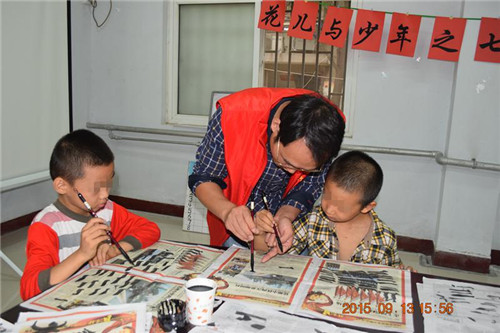 2015年9月13日下午14:00社工和志愿者便早早的在同行机构多功能活动室等候组员的到来,刚过10分钟组员们就陆续来到活动活动地点,“老师快开始吧,我们都等不及了”“老师我很想学书法”在组员的期盼声中,同行社工低保家庭救助项目“花儿与少年——七彩学堂(一)第三、四节活动在同行多功能活动室正式开始。