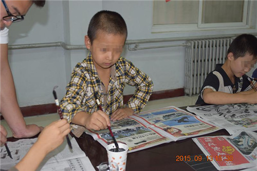 图二:学习书法好少年