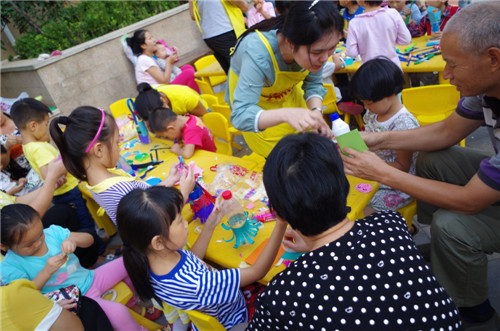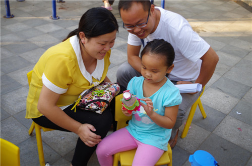 第一个环节为“欢乐跳格子”热身游戏,在动感的音乐与小组带领者的引导下小朋友与家长一起跳格子,共同寻找童年的快乐;第二个环节就是我们今天的主题—瓶子的靓装。亲子家庭自带废弃的瓶子来到现场,在老师的引导下发挥想象力与创造力,给瓶子穿上风格各异,彰显个性的漂亮衣服。每个亲子家庭做完后由我们的社工为每位家庭拍照,将活动照片传至同行社工四月天社区服务中心QQ空间相册内,每位家长可以获取活动过程中捕捉到的亲子美好瞬间留作纪念。