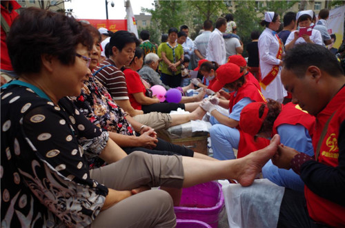 【图2】孝当先志愿团队为社区老年人提供免费修脚服务