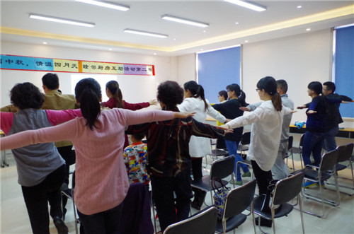 【图3】曾老师生动演示前庭觉发展不足时孩子表现