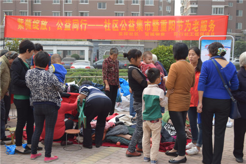 你想度过一个怎样的重阳节呢?需要专业医护人员帮您做免费的身体检查吗?想要专业造型师来到您的楼下为您免费剪发吗?需要来免费领取我们的干净衣物来温暖您的身心吗?想要把您家的闲置物品拿来进行物物交换吗?你需要的、想要的我们的公益集市重阳节为老服务活动现场满足您!2015年10月18日上午9点,同行低保家庭救助项目社工联合呈祥社区、智诚物业在低保户较集中的华瑞紫薇苑小区举办“紫薇绽放 公益同行—社区公益集市暨重阳节为老”活动,活动吸引了200多人踊跃参与其中。