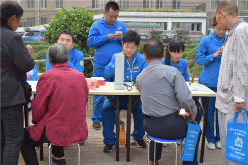 义诊区:安泰社区卫生服务中心的衣物人员在为低保户和社区居民体检
