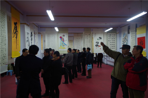 居民欣赏书画作品