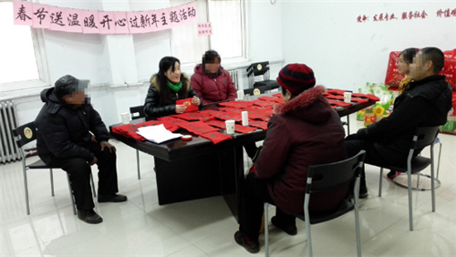 同行社工低保项目以扩大低保困难家庭社会支持系统为纽带,链接郑州市慈善总会救助资金和物资,东风路街道办党工委书法爱好者书写的春联,以及同行社工准备的爱心包送上春节的祝福。活动采取定点发放和上门慰问相结合的方式。在机构设立慰问物资发放点,方便服务对象过来领取。对于不方便过来领取慰问品的服务对象,我们采取上门送温暖的方式,为服务对象送去春节慰问品。活动内容主要是为这些社区低保家庭发放春节慰问金及慰问物资以及春联,并举行座谈会,切实了解服务对象需求。活动过程中,服务对象感受到了同行社工、郑州慈善总会和东风路街道办党工委老师们对他们的关注与关心,在收到慰问物资的时候,阿姨感动的落泪了,一直拉着社工的手,心里有说不出的感激。