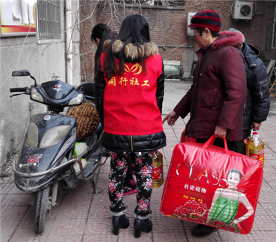 图五:社工为服务对象搬运慰问物资