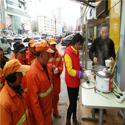 农历正月十五,是中国传统意义上的元宵节。这一天,民间有吃元宵、赏花灯的习俗。值此佳节来临之际,2016年2月19日,轻院社区服务中心社工联合爱心企业“吃面吧”开展“爱心元宵暖春风”活动,为社区周边的环卫工人及交通协警提供免费享用汤圆的服务,同时借此机会为他们送上节日的祝福。