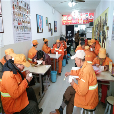 早上九点半,轻院社区社工事先到达“吃面吧”店铺,邀请周边环卫工人及交通协警参与“爱心元宵暖春风”活动。紧接着社工开始进入忙碌的准备工作,在店外摆好桌椅,拿出事先准备好的汤圆,烧上开水、静静的等待着环卫工人及交通协警的到来。将近十点半,周边的环卫工人陆续地来到了“吃面吧”店铺,站在店外一直等待的社工赶忙邀请他们先到店里稍作休息。在汤圆煮开之后,环卫工人事先排好队,在社工及店铺老板的协助下有序地领取汤圆。在社工与环卫工人交谈中,环卫工人向店铺老板表达衷心的感谢,并夸老板善良,有爱心。他们很感激社区为他们做得这些,他们很满足。在这期间,他们不停地对“吃面吧”表示感谢。环卫工人在吃完汤圆临走的时候,会主动地把垃圾带走,并向社工及爱心企业再次表达谢意。