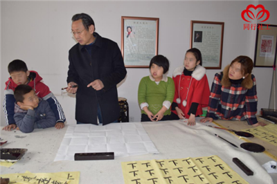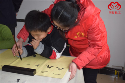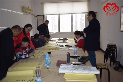 快乐的时光总是短暂的,转眼今天的课程就到了尾声。傅老师给大家布置了“丙申孟春”四个字的作业,让组员们回去练习。社工也邀请家长们也参与到书画班中来,与孩子共同学习,共同成长。通过这两次的活动,组员与社工的关系也越来越融洽了,同行相伴,快乐永远!