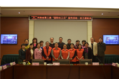 此次国际社工日宣传活动包括两个部分,3月14日至18日在河南省民政厅一楼大厅利用宣传展板展示同行社工服务成效,3月15日举行社工走进民政厅三社联动座谈会。