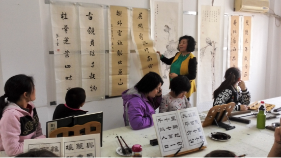 雨后的空气是那么清新,天气放晴,在东风路街道两新党组织红色家园我们的“蓝天大讲堂” 的第六次公益活动也要开始了。“蓝天大讲堂”是由著名书画家邹蓝天老师执教,旨在培养低保子女在书画方面的兴趣爱好,促进低保子女健康成长,提升自信心。随着组员的进步,并针对大家作业呈现的情况,这节课我们的主要内容是字画的落款格式和字体。