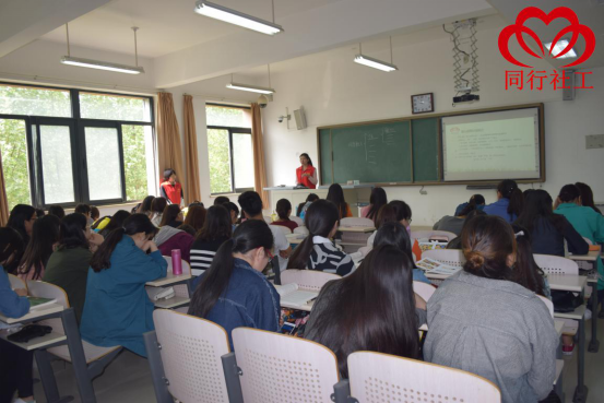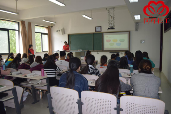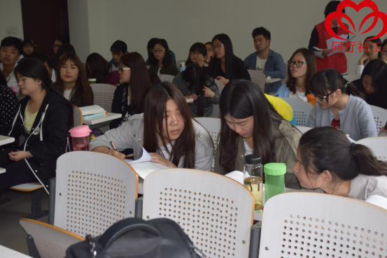 上午十点,我们的宣讲会正式开始。社工就最近网上出现空巢老人病死家中的新闻与同学们展开了讨论,激发了大家浓厚的兴趣。由于都是大一社会工作专业的学生,社工向大家介绍了同行社工的发展历程以及当前的服务领域,让大家对社工机构有了初步的了解。紧接着社工用生动的语言以及内容丰富的PPT向大家介绍了关于爱心纽带的主题,理念以及报名流程。在社工进行往届志愿者风采展示的时候,大家纷纷被爱心纽带丰富多彩的团建活动所吸引。经过将近一小时的宣讲,大家对志愿者这个概念以及爱心纽带计划也都有了详细的了解,有些同学迫不及待的在社工准备的志愿者报名表上留下了自己的联系方式。宣讲的最后,社工跟大家分享了自己从爱心纽带志愿者如何成长为一名社工的心路历程,并且再次鼓励大家加入爱心纽带这个友爱团结的大家庭。