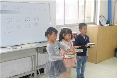 “哒、哒哒、哒”,跳动的音符、小巧的乐器,在孩子们的手中有节奏的跳跃着,和谐的韵律逐渐回荡在小小的教室里,优柔而又和谐。每一位小朋友都是那么专心、那么细致的敲击着、学习着。
