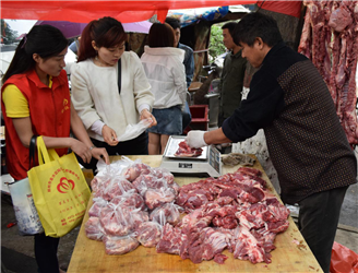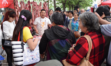 活动当天,同行社工一早就来到现场帮忙布置场地及准备物资领取卡。服务对象来到后,社工引导他们登记并排队领取物资领取卡;随后“羊肉哥”拉出来刚刚宰割的新鲜羊肉,社工及时帮助“羊肉哥”把这些新鲜羊肉分割成块、过称分装,然后把这些羊肉送到这些服务对象手中。活动过程中,社工一直在引导服务对象排队、有序地领取羊肉,对于一些身体不便的服务对象,在他们领取羊肉后,为保证他们回家路上的安全,社工协助他们把物资送回家中。