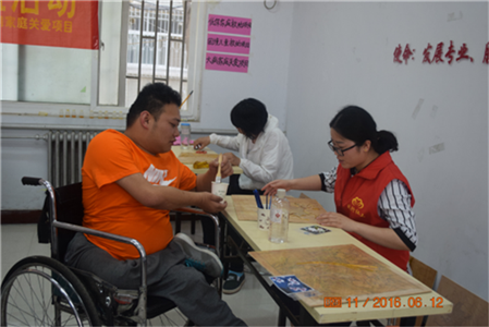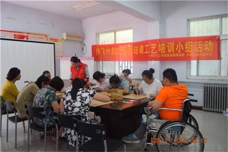 6月12日下午2点,距离上课还有半小时的时间,大家已经到齐了,在等候老师的过程中,组员帮助社工布置好场地,并帮忙把身体不方便的组员顺利接到教室。经过前一次的课程,大家已经相互熟悉,开始拉起了家常,彼此之间相互关怀。下午两点半,课程正式开始,老师布置完任务大家便迫不及待的开始制作。“我孩子下周也想来呢,他说学这个很有趣!”“学这个需要有耐心,还能修身养性!”大家一起有说有笑,好不热闹。遇到不懂的地方,老师耐心的跟大家讲解。在制作的过程中,有的组员时不时地看看其他人做的进度,生怕自己落后了。经过上一次的学习,大家都进步飞快,有几位组员领先完成了掐丝,便迫不及待地向老师询问自己做的好不好,在得到老师肯定的回答后,开心的笑了。时间总是在不经意间飞快溜走,转眼到了下课时间了,大家都还在专心致志的掐丝,直到社工提醒才依依不舍的离开。