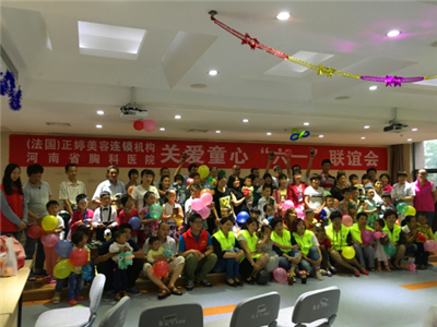 为欢庆“六一”儿童节的到来,并为河南省胸科医院的心脏病患儿们送去节日的关爱和祝福,2016年5月31日下午16:00——18:00,同行医务社工站联合河南省胸科医院社工部开展了“关爱童心”六一联谊会活动。河南省胸科医院院长苑星、医务社工部主任刘雅敏及各病区医护代表10余人参加了此次活动,来自全院的40余位心脏病患儿们也在照顾者的陪同下来到了活动现场。