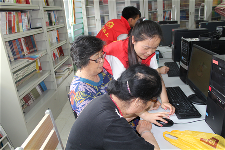 在现场两位老师使用一台电脑并由一位社工进行专门负责,以确保每个老师的疑问能够第一时间得到社工的回应。在现场一直参加活动的张老师找到社工小余说:“你手机教的很有耐心,我非常喜欢你,今天电脑你还教我吧。”说着拉着社工的手坐到了电脑旁边。最后的活动反馈时间有位老师说道:“我一直想学电脑但我家孩子就是不让我学也不教我,多亏你们开了这个课程,让我有机会学习电脑,太感谢你们了。”