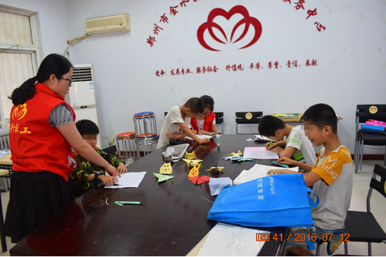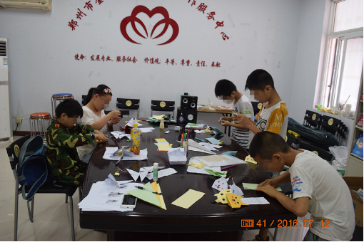 社工耐心的为组员讲解每一个步骤,组员跟着社工的节奏一步一步从简单到复杂完成了所有作品的制作。虽然个别组员做的比较慢,动作较快的组员还手把手的帮助旁边的组员。一个小时之后,可爱的“皮卡丘”、美丽的“蝴蝶”便出现在大家的眼前,孩子们为自己的成果感到高兴和自豪。通过中国传统的折纸游戏,锻炼了孩子们手指的触感、灵巧性及准确性,同时促进了大脑的发育。折纸虽然简单,但要求非常细致,组员们在社工的指导下,认真的跟着学习,充分发挥了自己的想象力。
