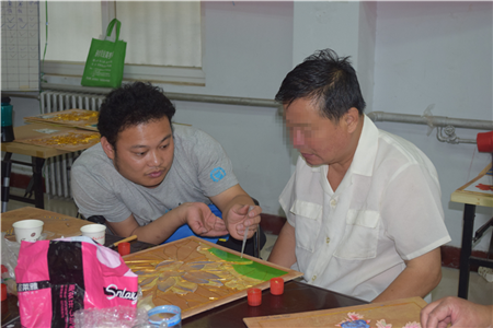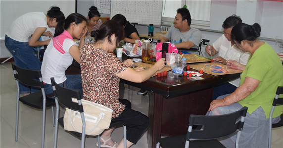 天气虽然炎热,但依然抵挡不住学员们学习的热情。不到两点半,组员们就陆陆续续来到了活动室,大家一边聊着天,一边准备着活动所要用到的材料。老师来到后,逐一检查了大家的作品,并对每个组员的作品做了评价。“张叔叔,你的这个掐丝掐的很好,但是你这个花朵的颜色,调的不太正确,所以你要重新调色、上色。”“刘阿姨,你的这个需要多放点水胶。”“小董,你学的挺好,来,你帮我看看,我这个对不对”组员之间也互相交流学习,共同进步。在学习的过程中,组员也互相交流,他们从现在联想到过去,又从过去回到现在的生活,通过回忆过去,对比现在,大家都感受到了现在生活的美好,也对未来充满了希望。最后一位叔叔对大家的讨论做了一句总结:社会在进步,国家在发展,我们的生活也会越来越好的。听完叔叔的总结,大家都开心地给这位叔叔鼓起了掌声。