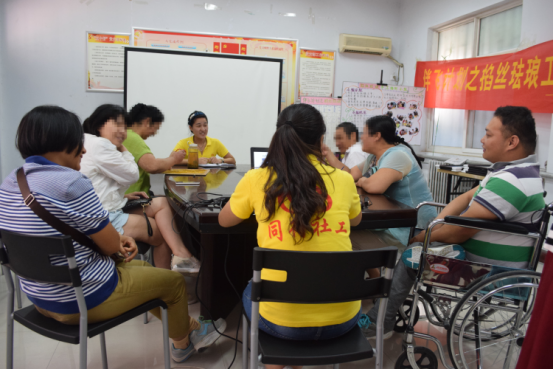伴随着阵阵秋风,同行社工低保家庭救助项目联合金水区“助困心光”大病家庭关爱项目开展的伴飞计划手工培训小组活动在同行社工多媒体活动室如期进行。2016年8月28号下午三点活动室里热闹非凡,传出阵阵笑声。回想起这个手工小组,从第一节课组员之间的陌生尴尬到现在的亲密熟知,不知不觉中大家已经相伴共度了一个仲夏。并且通过这段时间的学习和互助交流,组员们的动手能力、人际交往空间得到了较大的提升和拓展,同时也增强了自身的自信心。