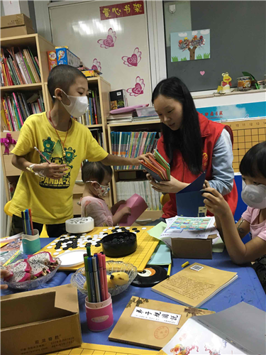 活动首先由社工带领进行热身小游戏,帮助大家更好的熟悉彼此并活跃现场氛围;随后,社工为小病友们讲述了关于“中秋”由来、传统习俗以及神话传说,“玉兔捣药”、“吴刚伐桂”、“嫦娥奔月”等激起了小病友浓厚的兴趣,并积极参与中秋话题讨论,大家一边吃水果,一边分享各自的中秋的难忘趣事;分享结束后,在社工的协助下,小病友们将自己的中秋寄予及愿望画在纸上,装入信封,意寓“信心”;最后,小病友们亲手为长期照顾自己的父母带回了月饼并在社工的鼓励下说出心中的感谢,感谢日夜陪伴自己,用心操劳的家人。