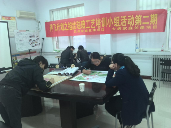 同行社工低保家庭救助项目中的伴飞计划之掐丝珐琅工艺培训小组是一个生计支持小组,随着学习的深入,大家的积极越来越高。10月13日下午,小组活动第二节在机构活动室如期开展。