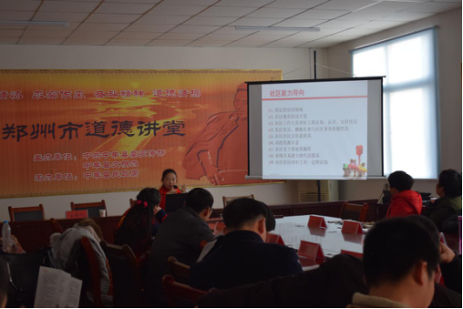 首先,郑州市金水区同行社会工作服务中心理事长王金山主任向所有参会人员介绍了世界和中国社会工作的发展史、河南财经政法大学社会工作专业发展的历史以及同行社会工作服务中心的创办背景与发展历程。对于没有接触过社会工作的社区工作人员以及类似于养老院这样的社会组织,引入这样一个新的概念,为他们今后的工作发展提供了极好的思路。