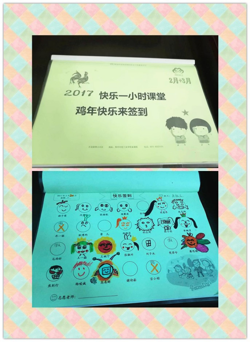 快乐课堂从快乐签到开始,26个空缺的圆经过小朋友的巧手,变成一张张特别的脸,汇成只属于轻院社区快乐一小时课堂的精彩画卷!让小朋友们在快乐签到中发散思维,感受团队!