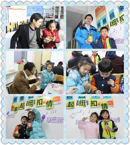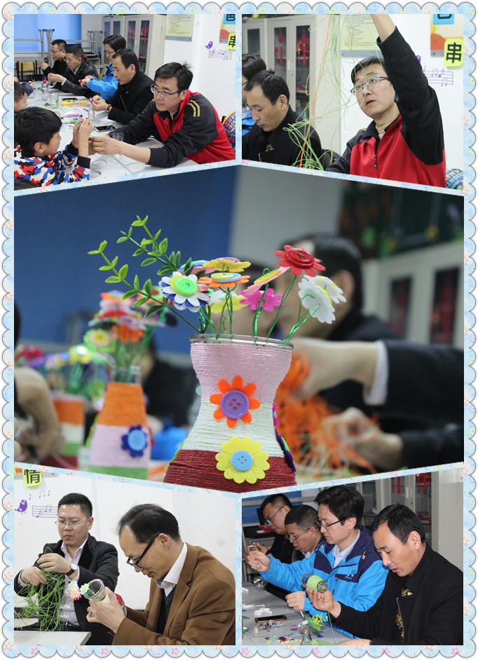 看!高颜值的爸爸们认真投入的样子,这一刻,他们不再是深沉的隐藏在孩子背后的那位父亲,他们努力用双手创造孩子心目中那位父亲的“超人形象”,努力制作出“父”与“子”的专属纽扣花。