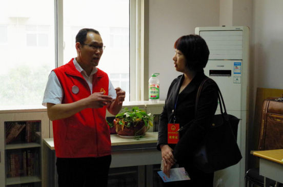 2017年5月5日下午,金水区人大、政协30名代表来四月天社区服务中心指导“双迎双创”工作,社区马晓斌书记陪同代表团参观社区文化广场、社区文明楼宇并介绍社区楼院组成、居民构成、文化建设等方面的工作;同行社工四月天社区服务中心吕雷波带领大家参观儿童活动室、书法室、文艺表演室、健身棋牌室等,并详细介绍了所开展的社区服务情况,同时,社工也针对各位领导对社会工作、社工服务方面的疑问进行详细的解答。