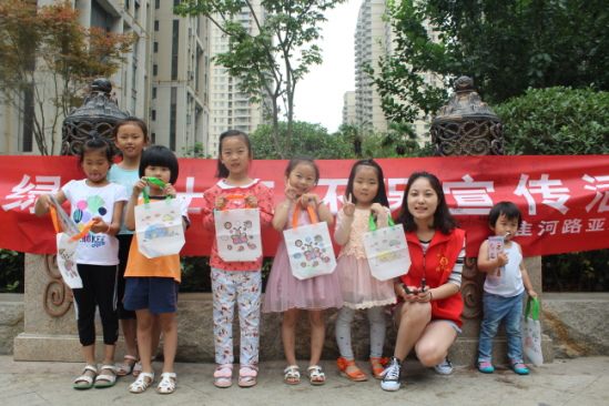 环境保护,从我做起,从每一位居民做起。小小的环保袋上,手绘出的是小朋友眼中的美丽,也希望居民朋友们能用自己的一双小手手绘出绿色社区,为绿色二七绿色淮河添砖加瓦!