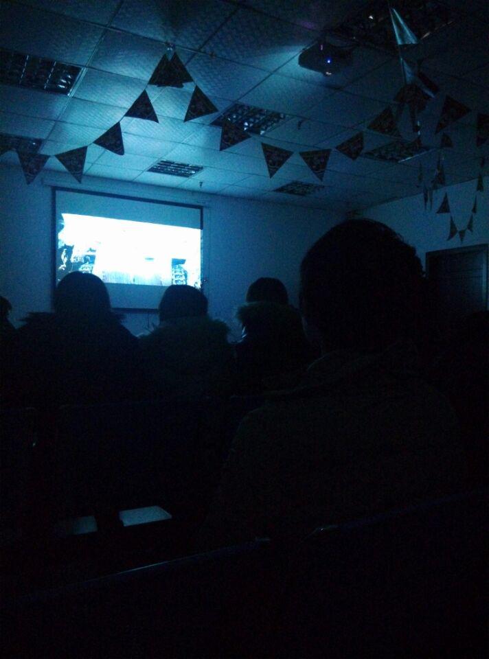【图1】黑暗里,大家认真观看电影